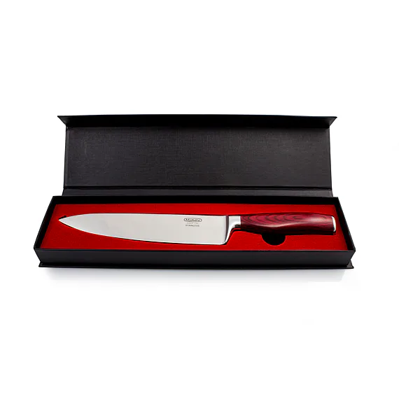 Nůž 400-ND-20/RUBY KUCHAŘSKÝ je výborným společníkem do každé domácnosti a restauračního provozu. Umožňuje pohodlné porcování masa, krájení zeleniny a bylinek, je vhodný pro rychlé krájení tzv.kolíbáním, kdy se přední část ostří stále dotýká krájecí plochy a umožňuje tak rychlou a efektivní práci.