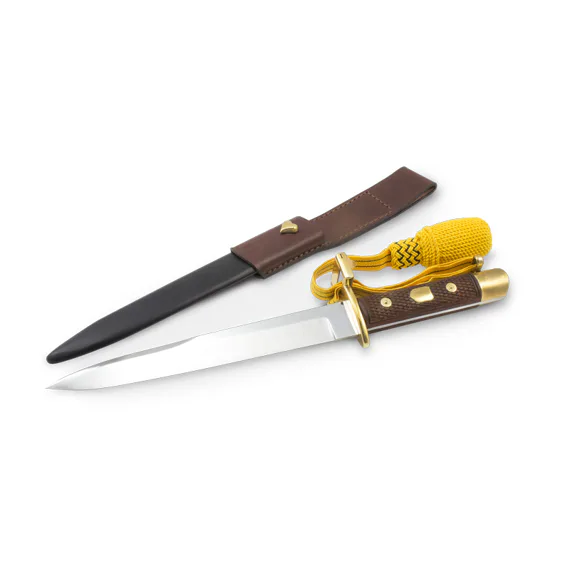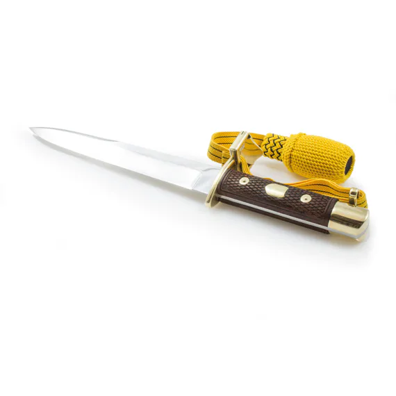 The length of the knife 33 cm, with a central blade tip and a false edge, fully respected the needs of trench warfare. o protect the hands of a fighting soldier, the knife was equipped with a guard in shape of elliptical cross. The knife handle consisted of two wooden extensions attached with three rivets to the knife bar. The M-1917 knife was worn in a steel sheath with a leather knot. Since 1917, when the knife was introduced into the Austro-Hungarian Army, it has been a welcomed prey weapon. Due to its simple design, it became a pattern for a number of other assault knives and was used in the armament of armies until the end of World War II.