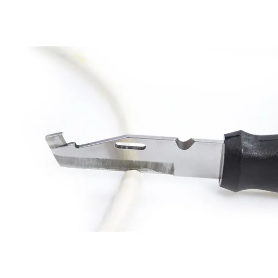 The knife speeds up work on low-voltage and high-voltage cables, makes it safer and easier. It can also be used in inaccessible places with high cabling density.