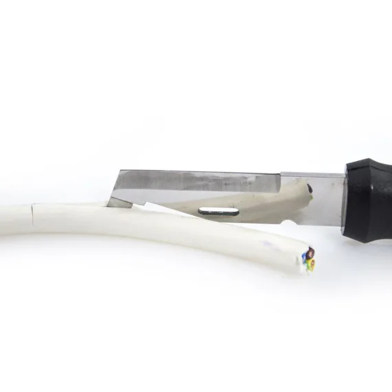 2. The special shape of the tip of the knife is intended for cutting the sheath of electrical cables and their subsequent stripping.