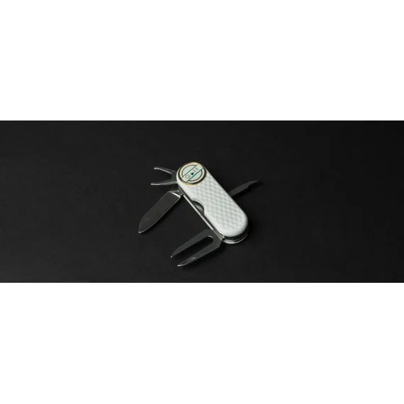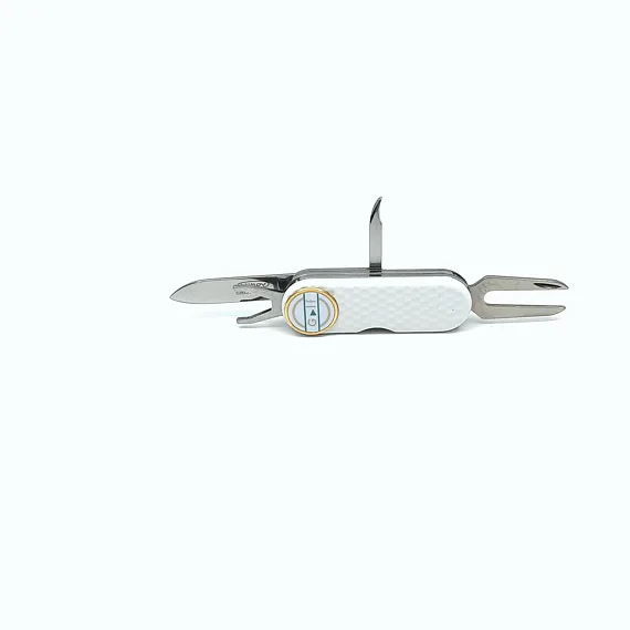 Professional ergonomically shaped golf multi-tool pocket knife in an elegant design. Made of high-quality and durable materials. Despite the many features at its disposal, it weighs only 73 g. The Golf knife is made of high-quality 420 stainless steel, which is extremely corrosion-resistant. The advantage of the knife is its handling. The marker can be easily removed, inserted on the green and attached back to the handle. The divot repair tool will help you keep the lawn intact, the golf shoes spike wrench provides the golfer with professional comfort. The tee hole punch and groove cleaner is a very practical helper, especially during the spring and autumn season. The knife blade offers more possibilities of using the knife even outside the golf course. The golf knife will be a great support for you in tough times on the green and also a brilliant partner on a relaxing day with friends.