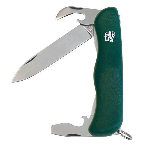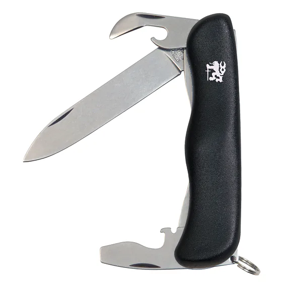 blade, bottle opener / screwdriver / groove for wire stripping, can opener, ring