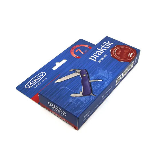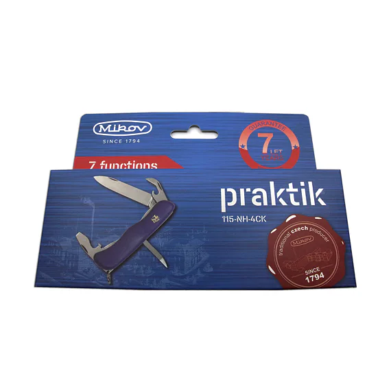 Kapesní zavírací nůž PRAKTIK 4dílný s bodcem, otvírákem na láhve a konzervy modrá střenka 115-NH-4