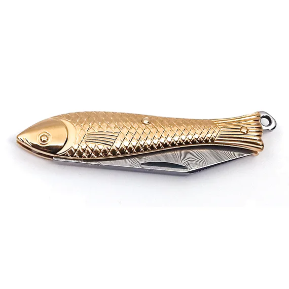 Kapesní zavírací nůž RYBIČKA - pozlacená, damašek 130-DZ-1
