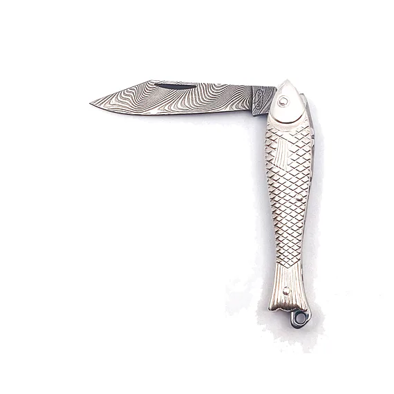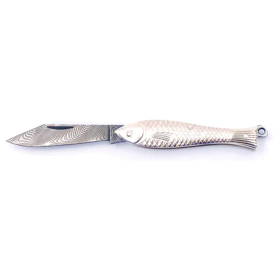 Kapesní zavírací nůž RYBIČKA - stříbrná, damašek 130-DS-1 (925/1000)