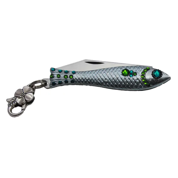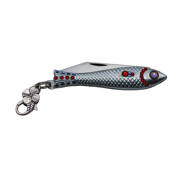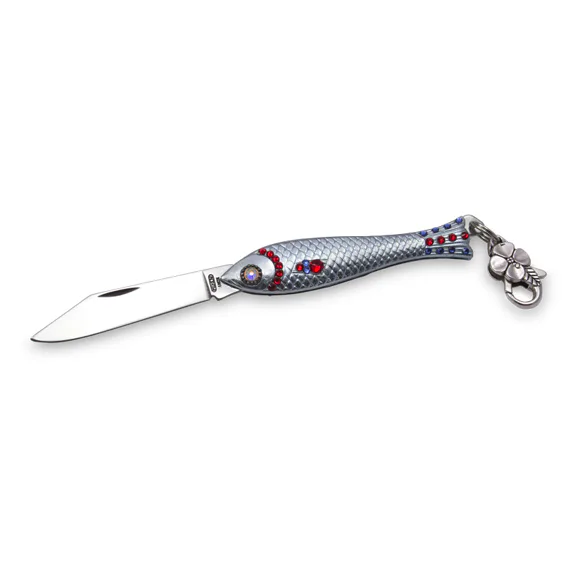 This fish knife belongs to pocket folding knives, which are decorated with crystal stones.