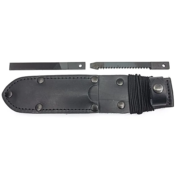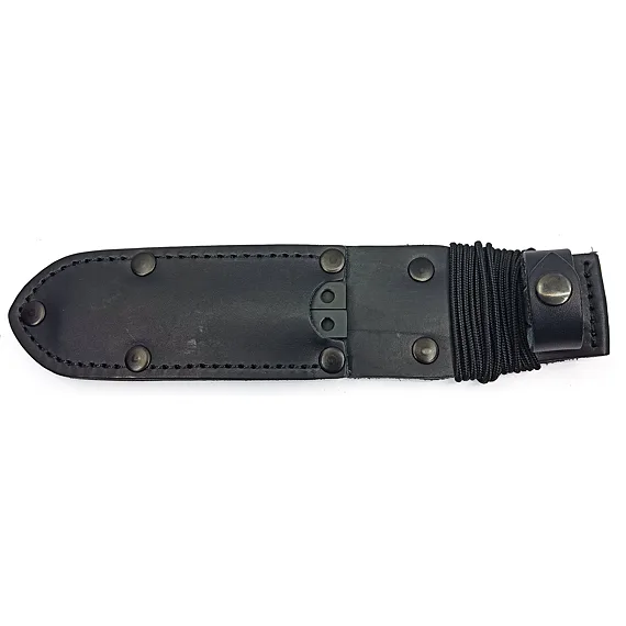 UTON 362-OG-4 BLACK LEATHER CASE - black leather case with a pocket for accessories and without metal plates that prevents the dagger from falling out of the scabbard, designed for the 362-OG knife. The case is equipped with a saw, file and paracord cord in black