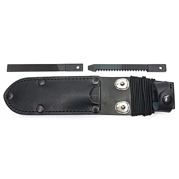 UTON 362-4 NATUR LEATHER-Brass case - light leather case with a pocket for accessories and KIN DOT strength buttons, old brass, including a metal plate preventing the dagger from falling out. The case is equipped with a saw, a file and a green paracord cord.
