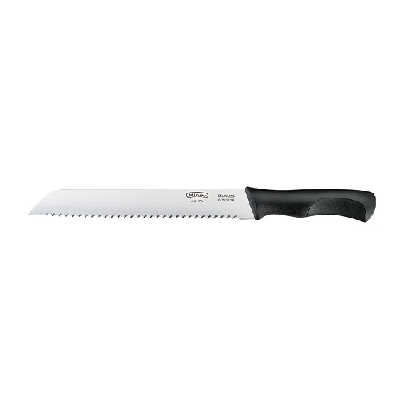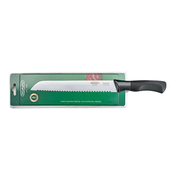 The knife is made of high quality stainless steel blades and durable plastic handle. The knife blade 57-NH-18 / Z FOR BREAD is made of stainless steel 420 with a hardness of 53-55 HRc. The knife blade has a conical (wedge-shaped) cut and high quiality sharpness. The handle is made of highly durable plastic, which has an ergonomic shape for a comfortable and secure grip with all fingers. The 57-NH-18 / Z BREAD knife is suitable for everyday use and is corrosion resistant. The knife is certified for contact with food according to EU standards. Number of functions: 1 br> Knife 57-NH-18 / Z FOR BREAD is a very high quality product from the knife company Mikov, its history dates back to 1794 and is located in the town of Mikulášovice, which is located in the National Park Bohemian Switzerland.