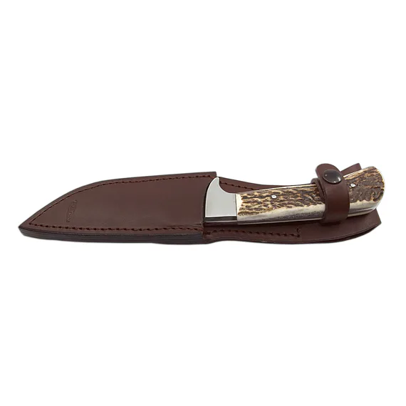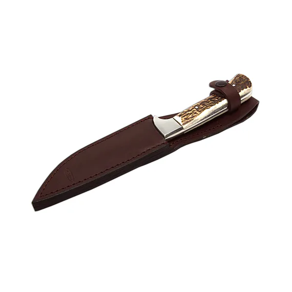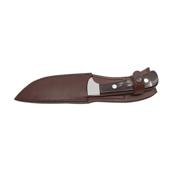 The blade is made of high quality stainless steel type 420 with a hardness of 53-56 HRc. The back of the blade is slightly sloping to the tip and is grounded to two thirds of the length. The completely classic curvature of the blade into the tip to the dorsal side facilitates cutting just by the tip of the knife. The blade steel also permeates the entire handle. With a total weight of approx. 250g, it is a really robust tool.
