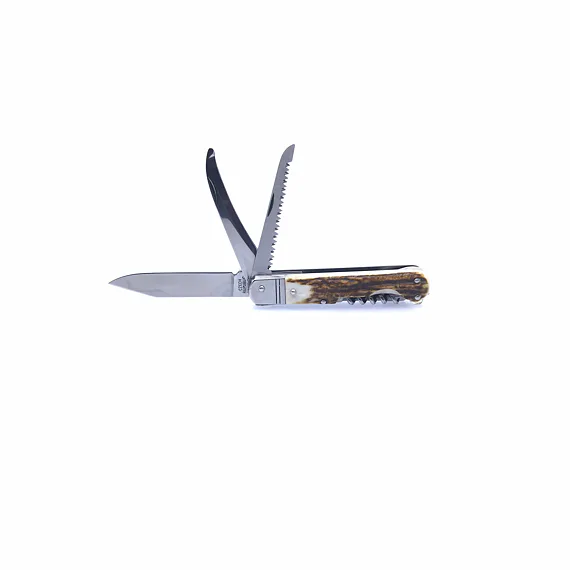 Lovecký zavírací nůž FIXIR 4dílný s pilkou, páráčkem a vývrtkou - střenka paroh 232-XP-4V