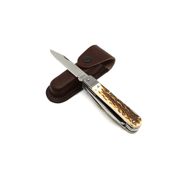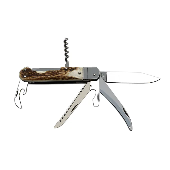 Lovecký zavírací nůž FIXIR 6dílný s pilkou, páráčkem a vývrtkou - střenka paroh 232-XP-6V