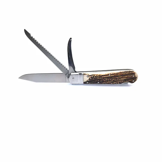 Lovecký zavírací nůž HUNTER 3dílný s pilkou a páráčkem - střenka paroh 230-XP-3