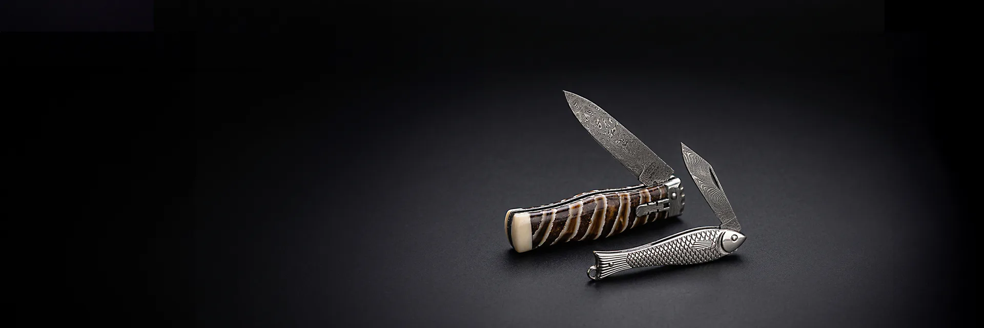Kapesní nůž Rybička: Tento drobný kapesní nůž ve tvaru ryby je pravděpodobně nejznámějším a nejprodávanějším českým nožem všech dob. Zatímco klasická verze se zinkovými střenkami a čepelí z nerezové oceli 420 je ideálním prvním nožem, posunuli jsme tento ikonický model i do sféry vysokého nožířství a luxusu. Dnes tak můžete zakoupit Rybičku v mnoha exkluzivních provedeních, která uspokojí i ty nejnáročnější sběratele. Nabízíme stříbrnou i pozlacenou Rybičku a dokonce i investiční zlatou Rybičku. Ta je vyrobena z masivního 18karátového zlata, oko ryby tvoří český granát a každý kus je opatřen unikátním výrobním číslem. Rybička tak dávno není jen hračkou, ale stala se symbolem tradice a cenným artefaktem.