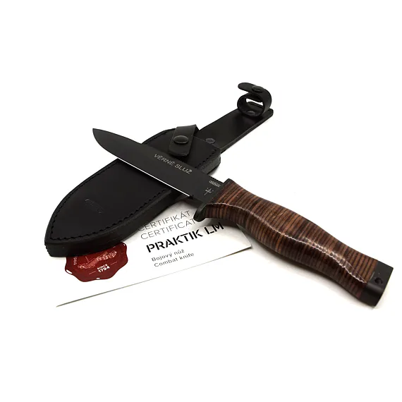 The PRAKTIK LM knife has a handle made of oval leather rings, the length of the handle is 12 cm.