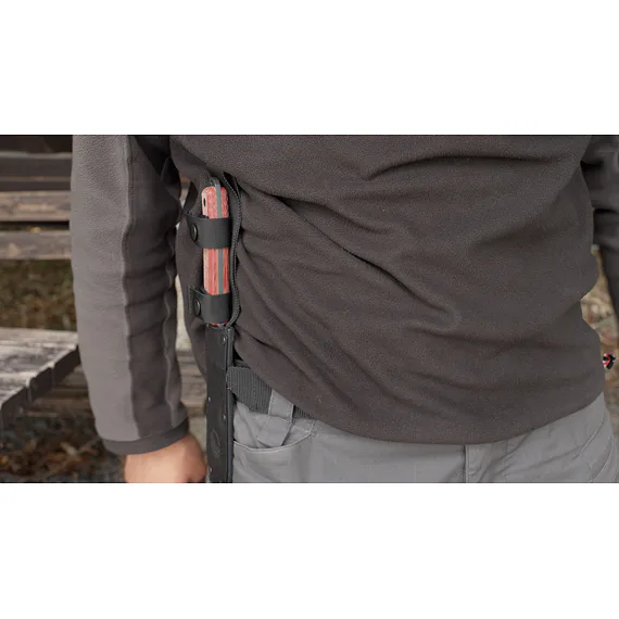 The knife handle is fixed to the cord with two press-fit straps. The entire surface of the case is made of the same material that is used to make military equipment
