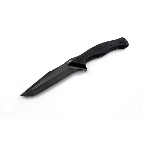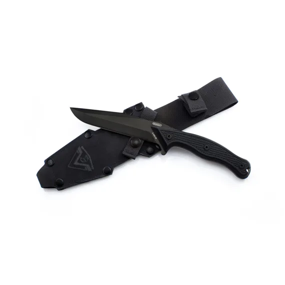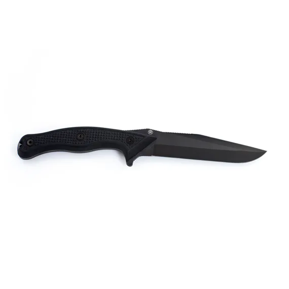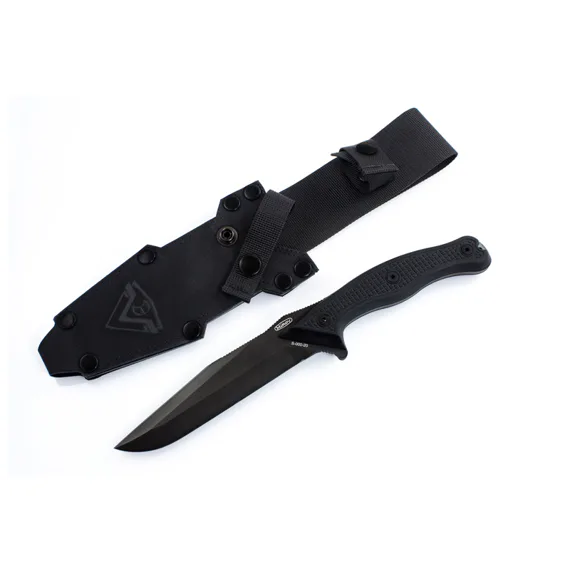The knife handle is barrel-type with attachments made of black G-10 material. Ergonomics is designed to fit all grips, regardless of hand size.