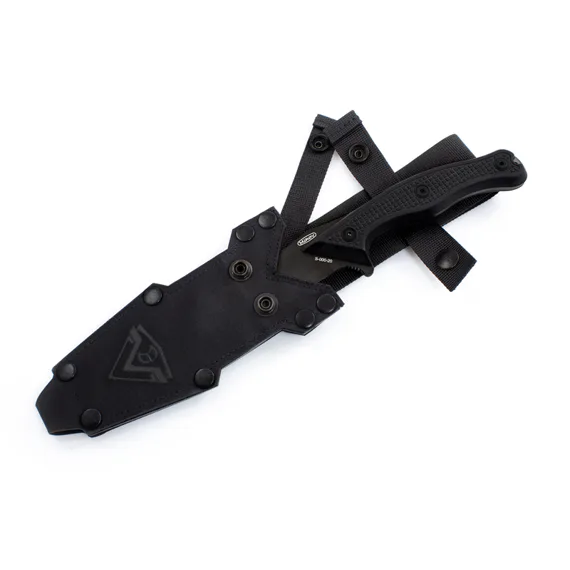 The knife sheath is made of laminated non-flammable cordura 500, black.
