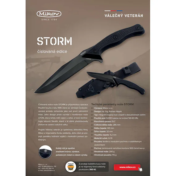 The knife blade is equipped with a double-sided blade. The lower blade with a length of 142 mm with a raised tip is the same as with the UTON knife.