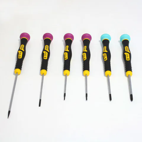 Šroubovák určený pro montáž a opravy zařízení menších rozměrů (např. telefony, měřící přístroje, fotoaparáty apod.)