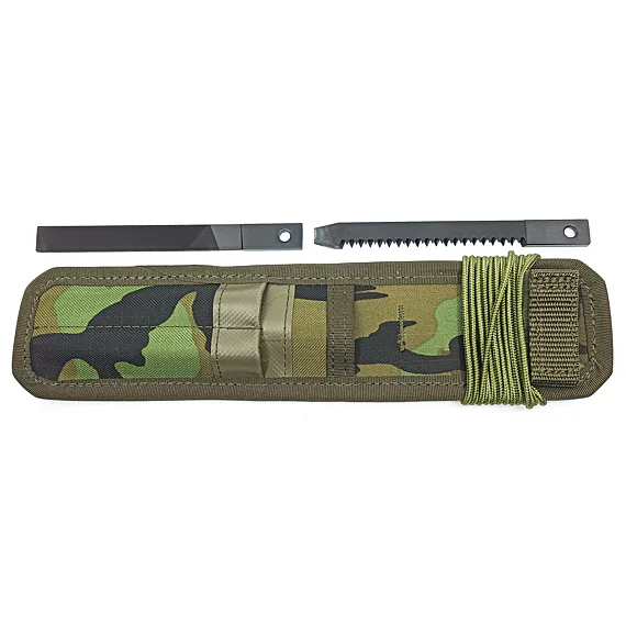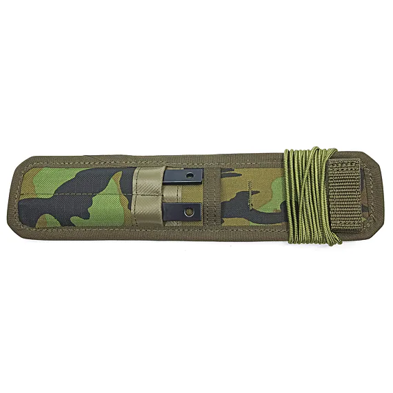 UTON 362-4 CAMOUFLAGE CASE - textile camouflage case green with a pocket for accessories, including a metal foil preventing the dagger from falling out. The case is equipped with a saw, file and paracord cord in green
