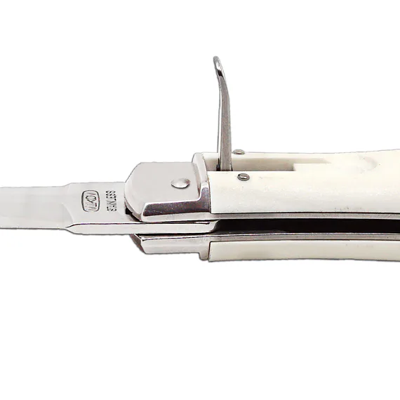 The knife is manufactured in a 1-3 tool vision. For example with the main blade, saw, can opener or bottle opener with screwdriver and groove for easy stripping of cables.