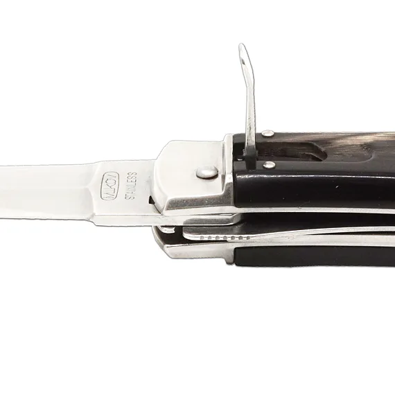 The knife is manufactured in a 1-6 tool version. For example with the main blade, saw, can opener or bottle opener with screwdriver and groove for easy stripping of cables, corkscrews and small scissors.