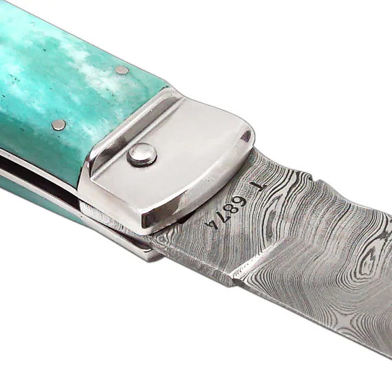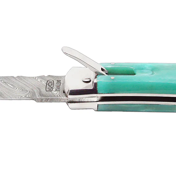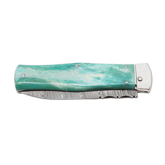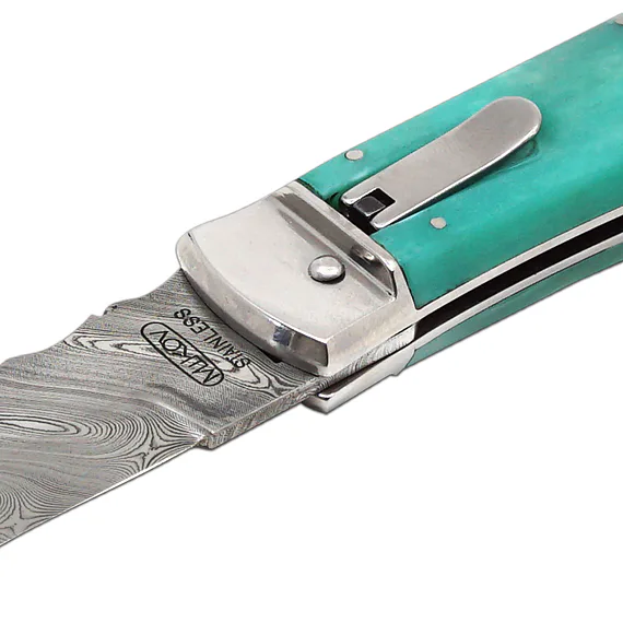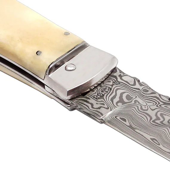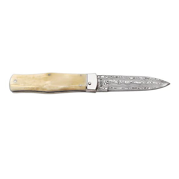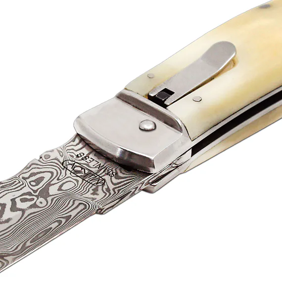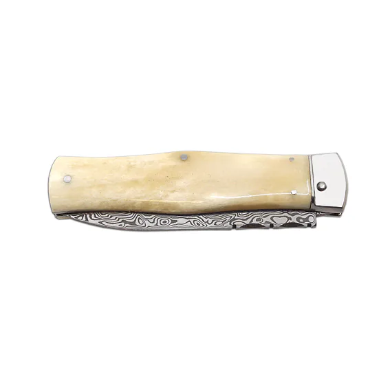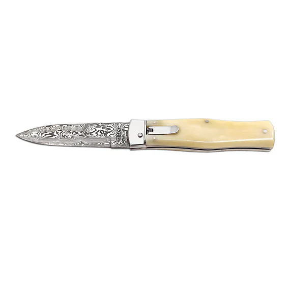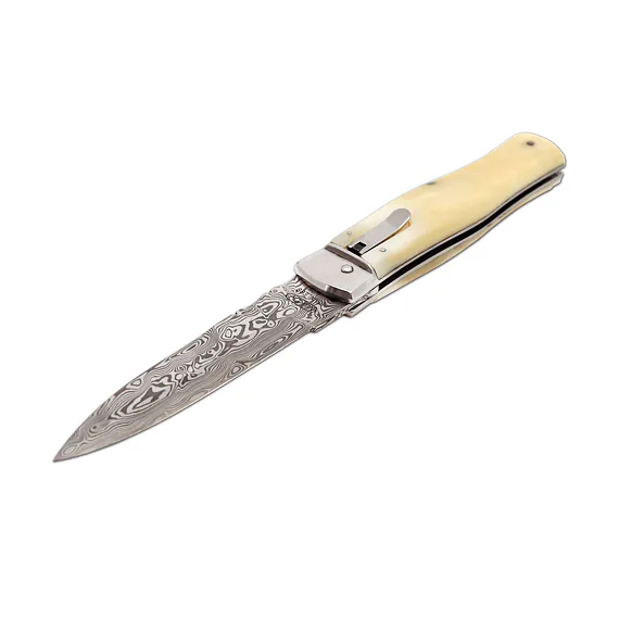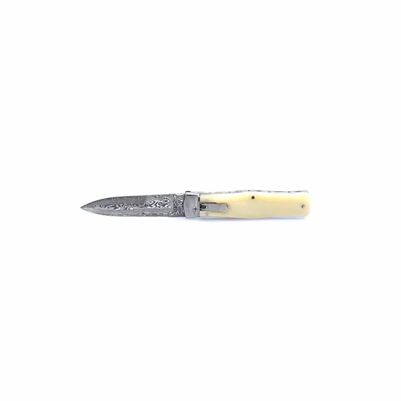 Vyhazovací zavírací nůž PREDATOR – damašek, střenka kost bílá 241-DKo-1