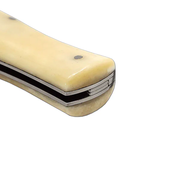 The handle of the knife is made of real camel bone, thanks to which it gets an exotic touch, and thanks to coloring, the knife becomes a unique and original product. Its shape not only guarantees a pleasant and firm grip, but also prevents the hand from slipping and injuries.
