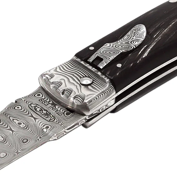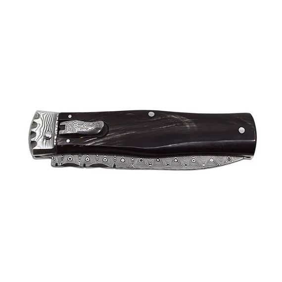 Vyhazovací zavírací nůž PREDATOR PANTHER – damašek, střenka buvolí roh 241-DR-1
