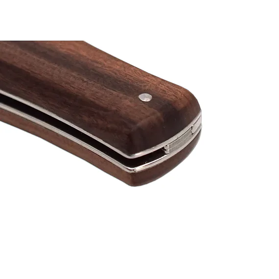 Střenka nože je vyrobena z kvalitního exotického dřeva PALISANDER SANTOS. Svým tvarem zaručuje nejen příjemný a pevný úchop, ale zároveň brání sklouznutí ruky a poranění.