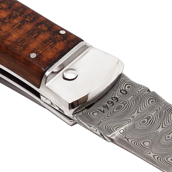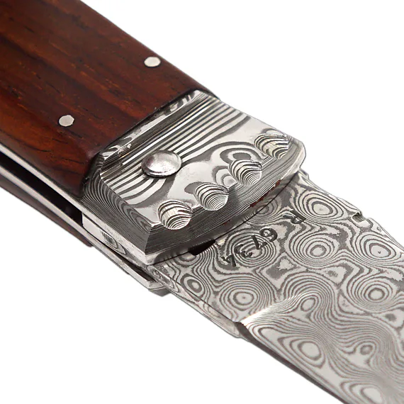- the handle of the knife is made of exotic wood (cocobolo or snake wood) with an ergonomic shape that fits perfectly in the hand