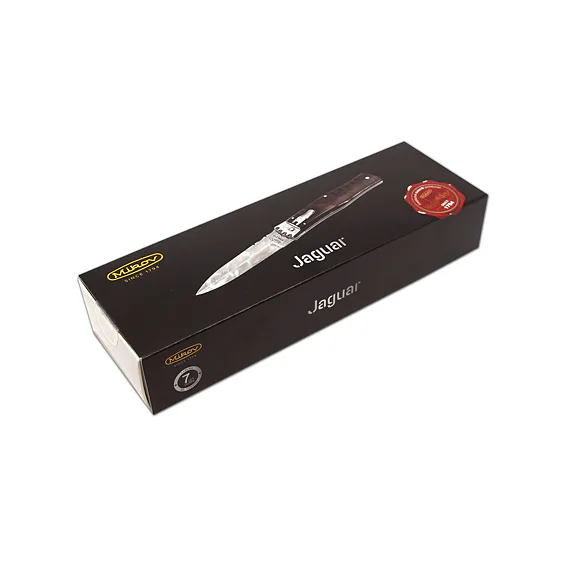The knife has a luxurious and elegant design. Upon the customer's request, it is possible to produce WILDCAT in a left-handed version, and it is also possible to engrave a logo or lettering on the blade. Each WILDCAT is produced in a one-tool design only and comes with a luxurious leather case with a belt loop. Mikov equips each knife with a certificate, which confirms the originality of the product, the quality of materials and guarantees that the knife is handmade.