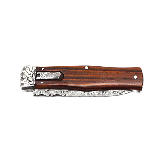 Vyhazovací zavírací nůž PREDATOR WILDCAT – damašek, střenka dřevo snake 241-DD-1