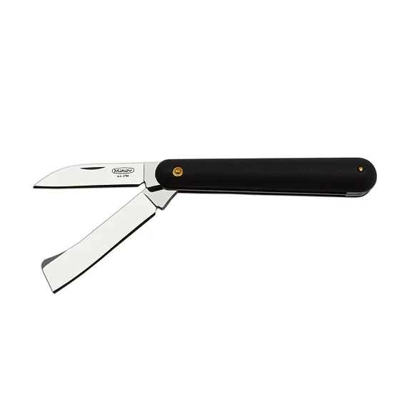 The grafting knife has a rounded tip, the inoculation has a bluntly tipped end - it is used to loosen the bark during inoculation. There are also folding knives with two blades, one for grafting, the other for vaccination.